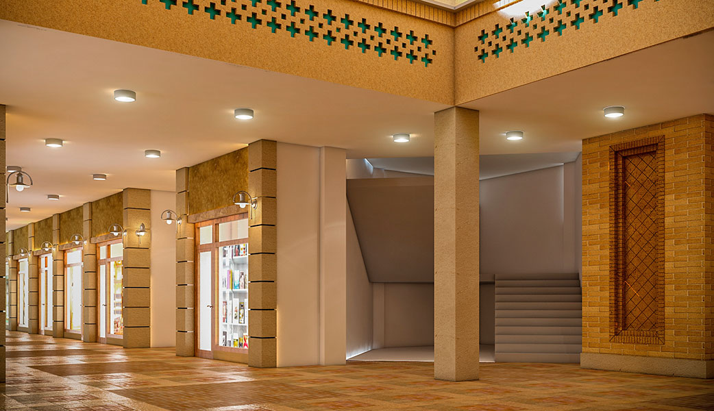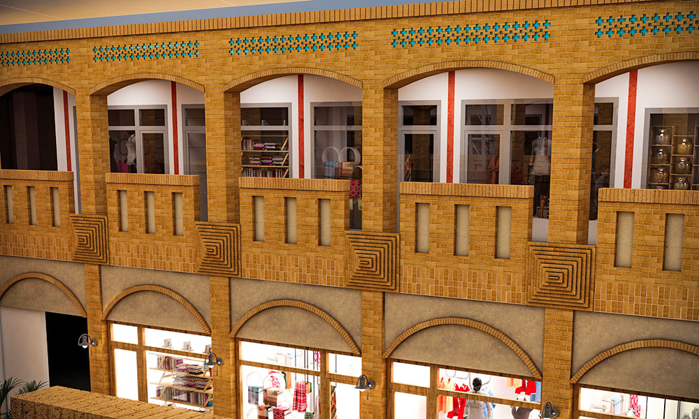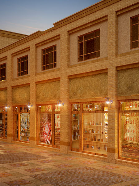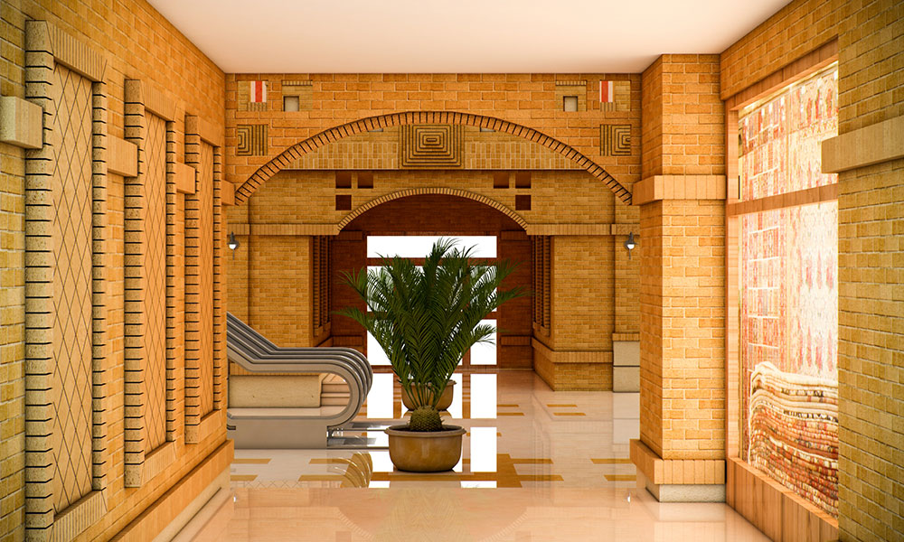- نمای فضاهای داخلی و خارجی با معماری ایرانی – اسلامی